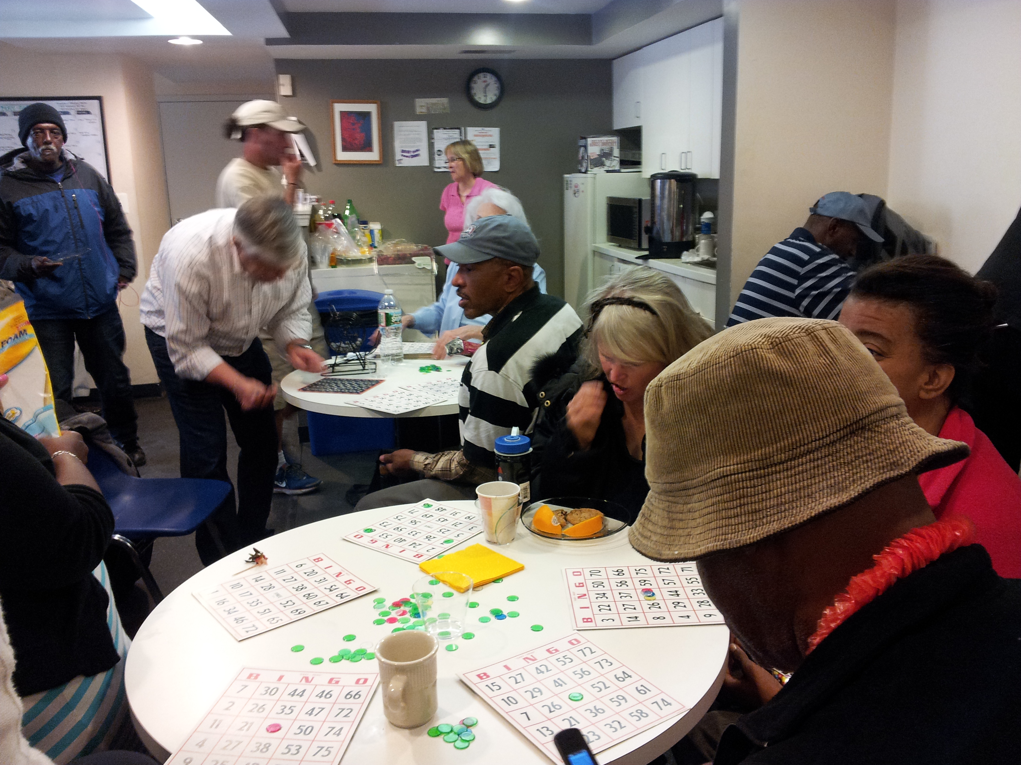 Our guests munched on cookies and strawberries as they played bingo for prizes ranging from shoe inserts to candy. Marty from Holy Trinity set up his karaoke machine, and everyone had such a blast! People were amazed by the pipes some of our members have been keeping a secret. Everyone also got up and did the YMCA at one point. It was such a fun time, and everyone is already asking us when we’re going to do it again.