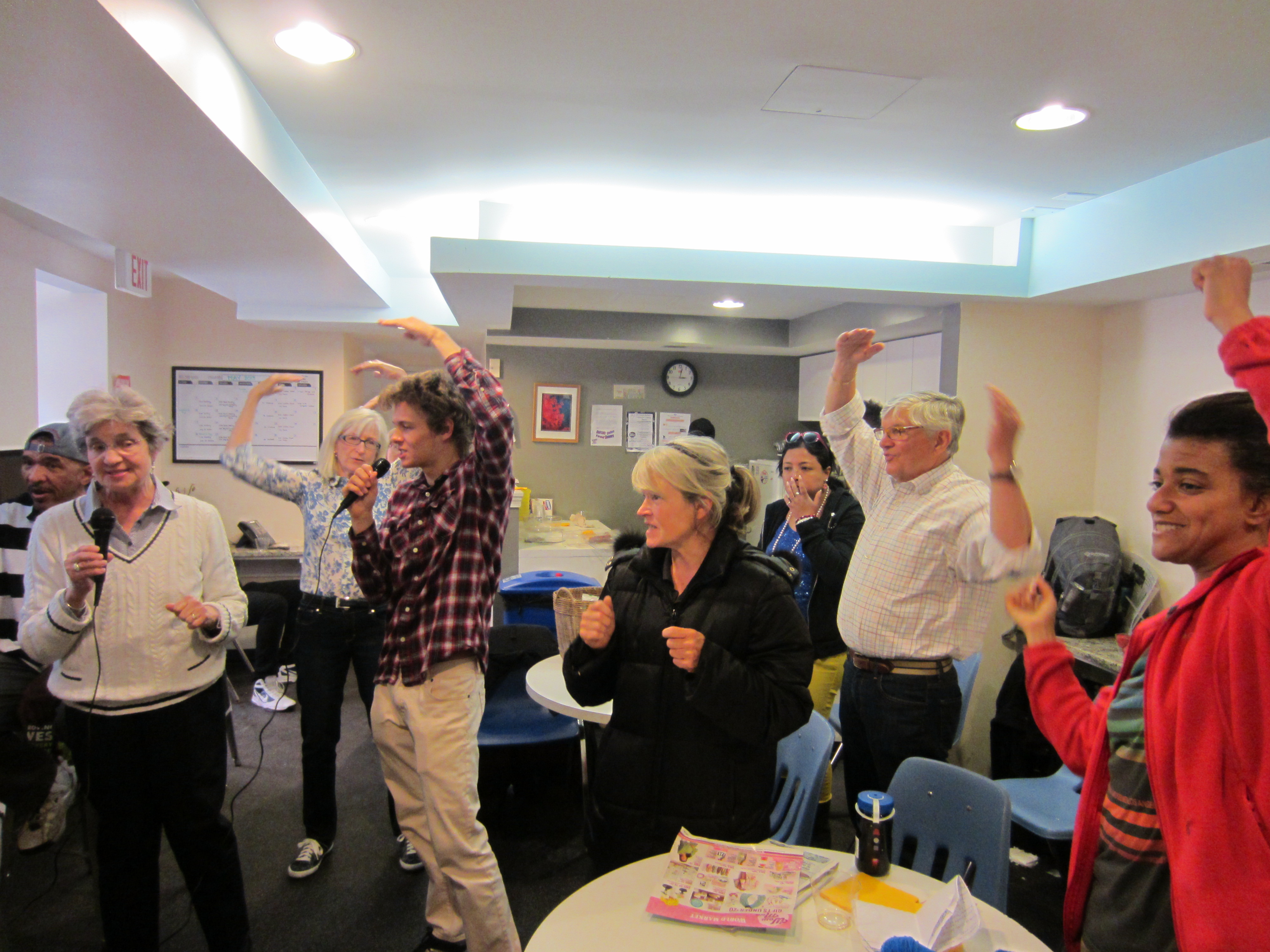 During the food, one of our members DJ’ed while volunteer Dewey set up a karaoke machine. The center was filled with music, singing, laughter, and smiles all afternoon.